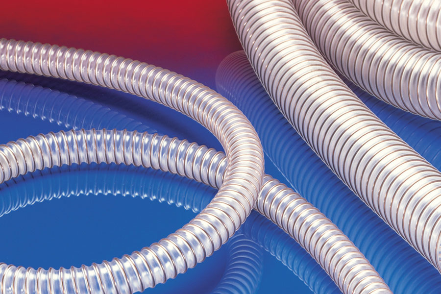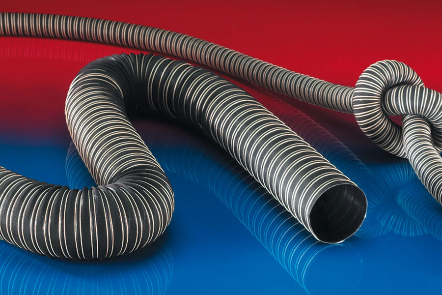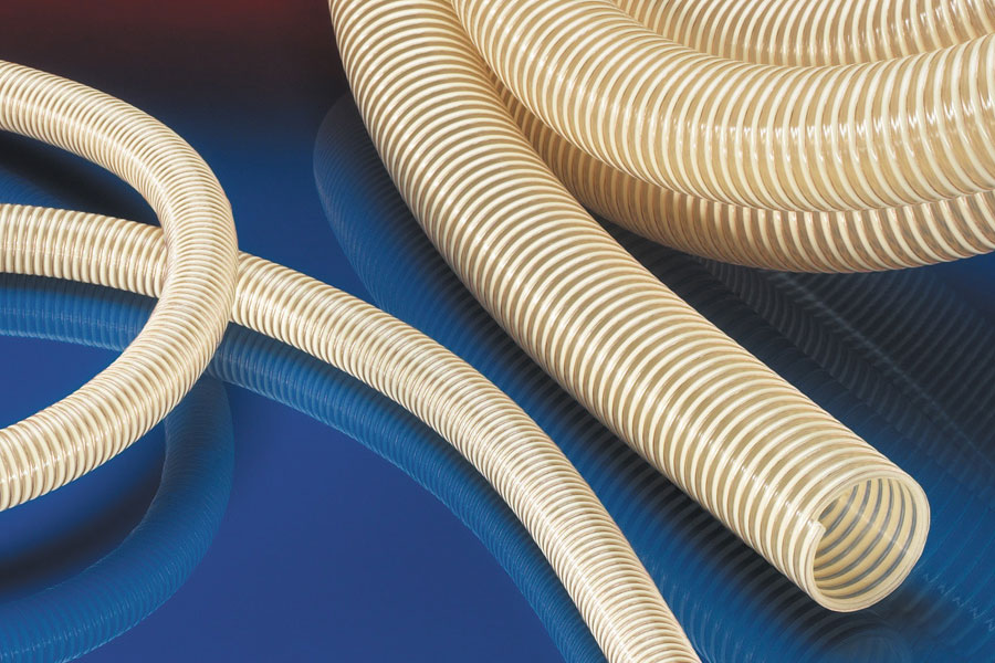Tuyaux pour transport de la matière plastique, matière PVC et Polyuréthane haute température résistance à l’abrasion, équipé de tresse antistatique.